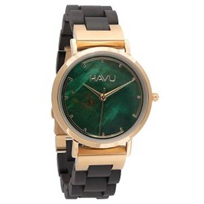 Kaunis Havu Revontuli Eebenpuu -kello on valmistettu aidosta puusta. Kevyt mutta jämäkkä puinen ranneke takaa mukavan käyttökokemuksen säällä kuin säällä. Revontulien inspiroima taulu on valmistettu suomalaisesta koivusta ja stabiloitu vihreäksi. Havun Revontuli-malli tuo lahjapakettiin palan pohjoisen tunnelmaa.